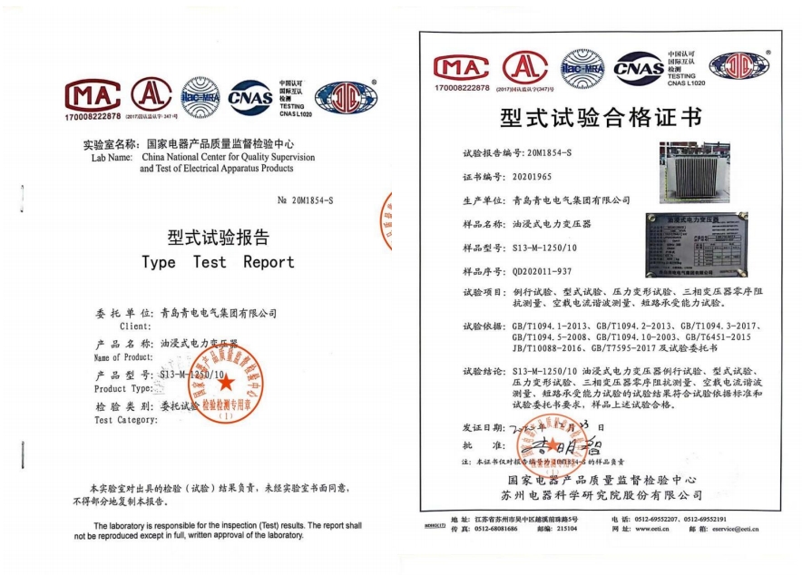 油浸式電力變壓器型式試驗報告